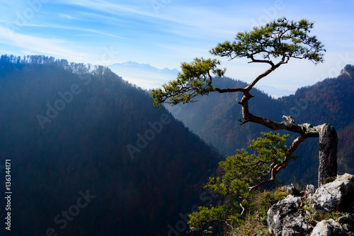 Old Pine Tree On Peak Of Mountain